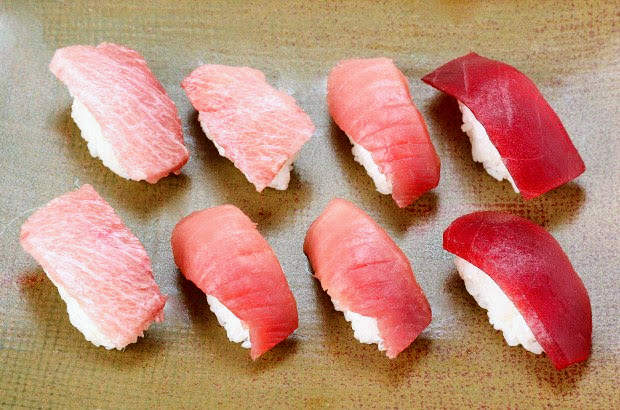 ぜんぜん食べていません。このマグロの、色のグラデーションがとてもきれいですね。
